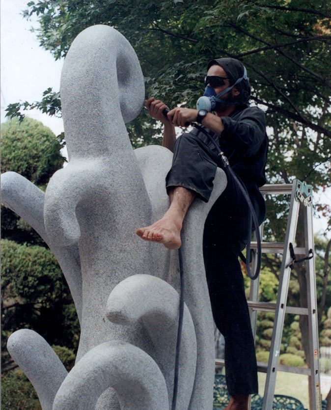 Il a sculpté le granite de Corée, le marbre blanc de Carrare, le marbre coloré des Pyrénées, l'onyx de Sainte-Marie de Barousse, le grès bleu de Moselle, le calcaire doré de Jaumont et depuis peu le marbre rose du Portugal.